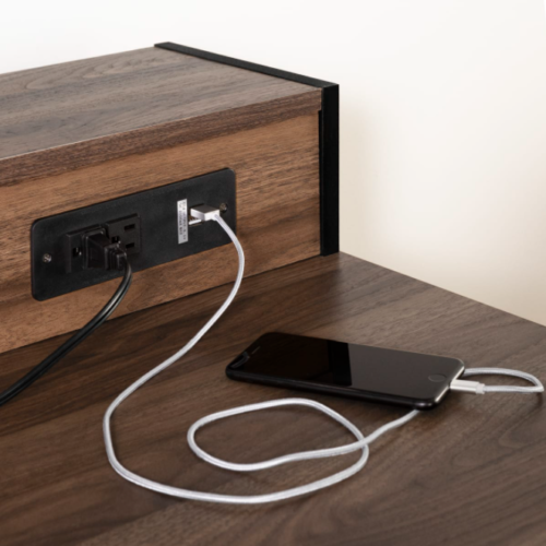 Hộc chứa ổ cắm tích hợp, phía dưới có hộc đi dây giúp bàn gọn gàng.