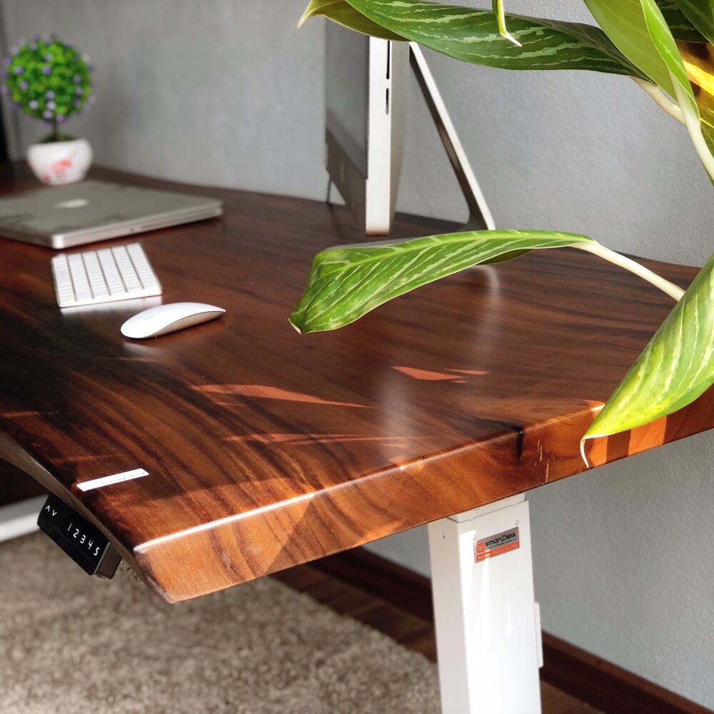 Mặt bàn gỗ Me Tây nguyên khối, có kích thước 70 X 150 CM, chống nước, chống mối mọt, chống cong vênh.